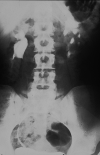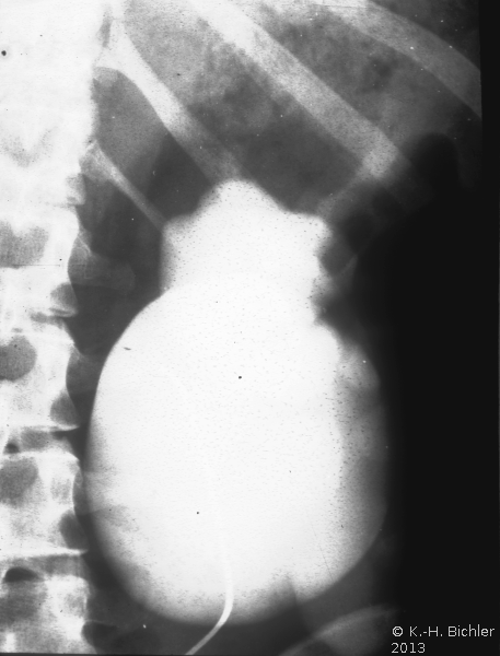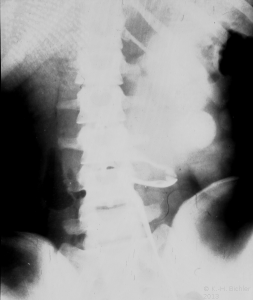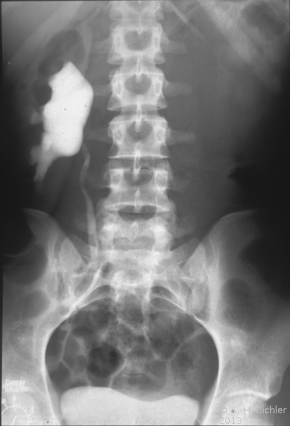 Hydronephrose bei Ureterabgangsstenose links. Bei dem Jugendlichen bestanden rezidivierende Harnwegsinfekte.