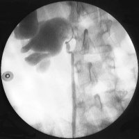 Die junge Frau kam wegen der beim Allgemeinarzt festgestellten Hypertonie (220 zu 120) und rechtsseitigem Harnstau in der Sonographie zur urologischen Abklärung. Im Isotopennephrogramm zeigte sich eine ausreichende Gesamtfunktion beider Nieren mit einer kleinen rechten Niere und entsprechend reduzierter Partialfunktion: Rechts zu links wie 72 zu 28. Beim Lagewechsel vom Liegen zum Sitzen zeigte sich keine Durchflutungsänderung bei erkennbarer rechtsseitiger Nephroptose. In der retrograden Sondierung fand sich auf der rechten Seite eine Ureterabgangsstenose, die eine Nierenbeckenplastik nach Anderson-Hynes erforderte sowie in gleicher Sitzung eine Nephropexie der rechten Niere (Abbildung 18).
